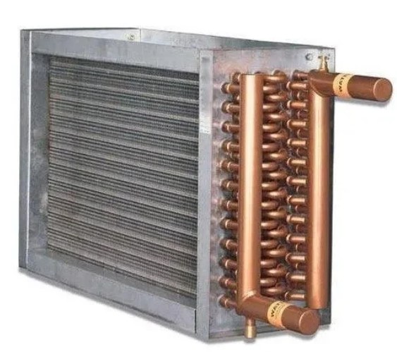 Water coil DX (direct expansion) coils in air handling units work as the evaporator of a refrigeration cycle, directly cooling and dehumidifying the air that passes over them. The basic principle is heat transfer from warm, moist air to cold refrigerant flowing inside the coil tubes.